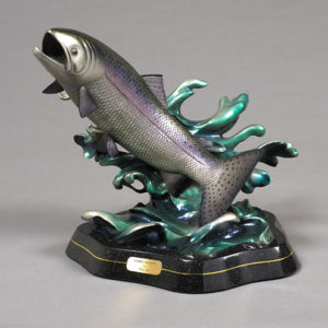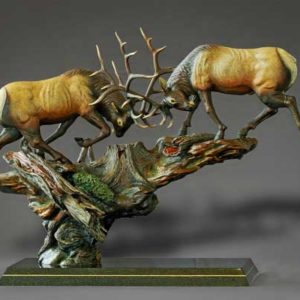 With a practiced eye and great imagination, Barry Stein coaxes wood and then bronze into the shapes of wildlife, producing flamboyant bronze frogs, leaping fish, a bronze elephant mother tenderly nudging her baby, a pair of magnificent elk with antlers clashing.